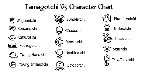 Wykazy i opisy Spis postaci Co wyro¶nie z mojego Tamagotchi? Zdjêcia Tamagotchi w ró¿nych sytuacjach Lista przedmiotów dostêpnych w grze Pami±tki Opisy gier Tamatown CiekawostkiPorady Instrukcja obs³ugi Karmienie Tajne kody Praca, szko³a, przedszkole Swatka i rozmna¿anie Generowanie punktów |