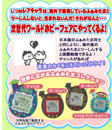 Reklama telewizyjna Tamagotchi V5Dziś przedstawiamy japońską reklamę Familitchi, znalezioną na YouTube przez flover, użytkowniczkę naszego forum. Komentarze (0) Autor: smeg; 17.02.2008, 13:39 Kolejne wieści na temat V5Strona bandai.co.uk rozszerzyła artykuł, o którym pisałam w newsie z 3 stycznia. Oto tłumaczenie jego fragmentu: "Wciąż masz do dyspozycji wszystkie fajne cechy poprzedmich wersji, ale teraz musisz zwiększyć swoją Tama-rodzinkę aż do 3 członków widocznych na raz na ekranie! Czyli braci, sióstr, mamuś i tatusiów. W zależności od tego, jak rozwijają się Twoje Tamagotchi możesz otrzymać 7 różnych rodzinek. Tamagotchi Familitchi zawiera również 65 postaci, 4 nowe mini-gry, zabawne animacje po naciśnięciu przycisku, ikonę telewizji, funkcje randki i zakupów. Dostępnych jest więcej interakcji online niż wcześniej poprzez nową stronę Tama and Earth Expo (patrz: poprzedni news), gdzie możesz grać w nowe gry, jak również spotykać się z tama-fanami z całego świata. Dodatkowo Familitchi zawiera minibreloczek z jedną z postaci. Z Version 5 masz dostęp do nowych haseł, dzięki którym poprzez odwiedzanie Tamagotchi Town możesz zarabiać Punkty Gotchi, kupować przedmioty i jedznie. Punkty Gotchi zdobywa się przez granie w gry albo ze specjalnych przedmiotów-nagród. W dodatku można je przekazywać przyjaciołom Twojego Tamagotchi jako prezent podczas połączenia przez podczerwień. W Tamagotchi Town możesz podróżować za granicę, odwiedzać swoich Tama-rodziców albo nawet spotkać Króla Tamagotchi! Interakcje z wirtualnym światem Tamagotchi wymagają komputera PC lub Macintosha z przeglądarką internetową i połączeniem z siecią. Nowe, wspaniałe cechy: Wiadomo też, jak będą wyglądały amerykańskie wersje V5. Nie mają kluczyka (takiego jak japońskie i australijskie) ani breloczka (jak europejskie). Możecie je zobaczyć na zdjęciu poniżej. Źródło: tamatalk.com. ![]() Na obrazku pod spodem prezentujemy też niektóre z postaci występujących w V5. Źródło: tama-zone.com. ![]() A na dokładkę możecie obejrzeć filmik prezentujący niektóre możliwości V5: Komentarze (0) Autor: smeg; 23.01.2008, 13:32 Tamagotchi V5 dostępne w Anglii i w Australii!Dziś, 13 stycznia w angielskich sklepach ukazały się pierwsze egzemplarze piątej wersji Tamagotchi. W Australii są dostępne już od kilku dni - mniej więcej od 10 stycznia. Do kupienia są też na eBay'u - niestety, sprzedający wysyła je tylko do klientów z Australii. Możecie obejrzeć je tutaj i tutaj. ![]() Właśnie dodałam pierwsze artykuły do działu o V5. Są to: - Zdjęcia O co chodzi w tym ostatnim? Otóż na zagranicznych forach o Tamagotchi popularne jest zakładanie tzw. logów - czyli tematów na forum, w których autor prezentuje zdjęcia i opisuje dzień po dniu, co słychać u jego Tamagotchi. Przetłumaczyłam dla Was log JamesChaplin1 z forum Tama-zone, ponieważ dotyczy on FamiTama i V5. Wkrótce pojawią się także zapiski kolejnych szczęściarzy, którzy mają już wersję 5! Komentarze (0) Autor: smeg; 13.01.2008, 13:08 Kolejne zdjęcia V5Na oficjalnej angielskiej stronie Bandai ukazały się informacje na temat Tamagotchi Connection Version 5, czyli Familitchi. Oto ich tłumaczenie: "Teraz musisz powiększać swoją Tama-rodzinę aż do 3 jej członków widocznych na raz na ekranie! Czyli braci, sióstr, mam i tatusiów! W zależności od tego, jak rozwijasz swoje Tamagotchi, możesz otrzymać 7 różnych, zabawnych rodzinek. Tamagotchi Familitchi ma również 65 postaci, 4 nowe mini-gry, zabawne animacje po naciśnięciu przycisku, ikonę telewizji, funkcje randki i zakupów. Dostępnych jest więcej interakcji online niż wcześniej poprzez nową stronę Tama and Earth Expo (patrz: poprzedni news), gdzie możesz grać w nowe gry, jak również spotykać się z tama-fanami z całego świata. Dodatkowo Familitchi zawiera minibreloczek z jedną z postaci." Zamieszczono także kolejne zdjęcia tama-jajek z numerem 5. Oto one: ![]() W sprzedaży są już gadżety związane z Familitchi - smycze, zegarki, zestawy do dekoracji Tamagotchi. ![]()