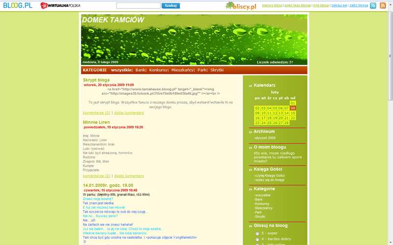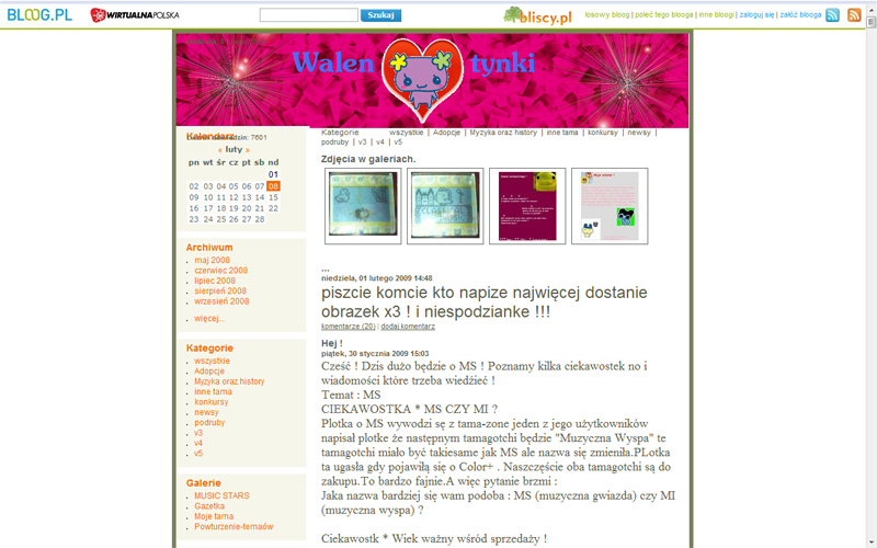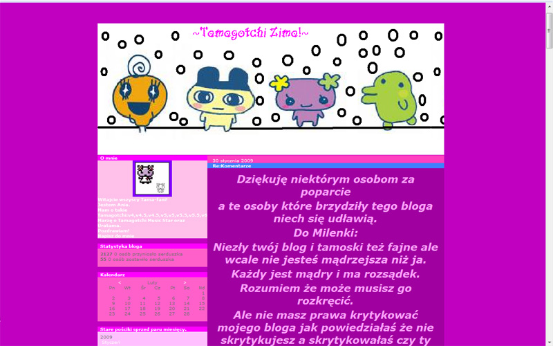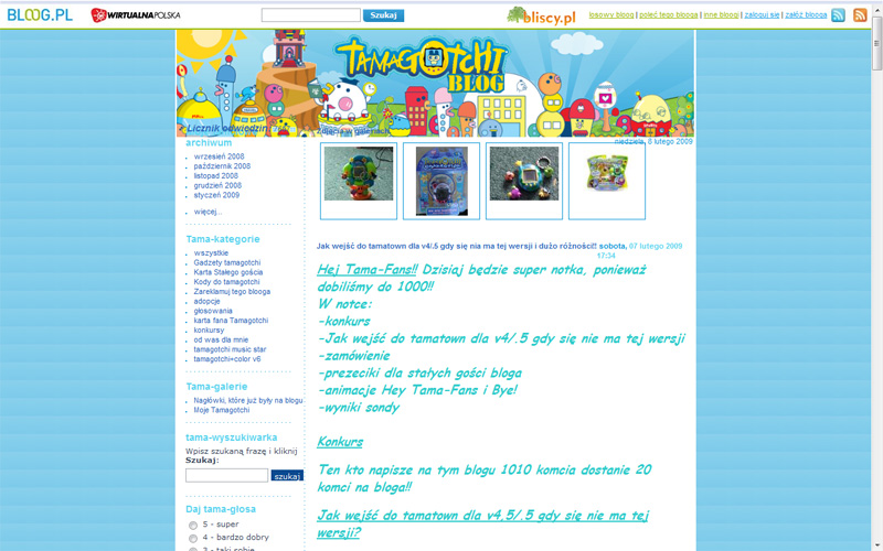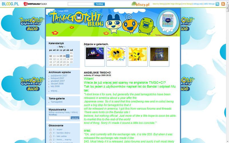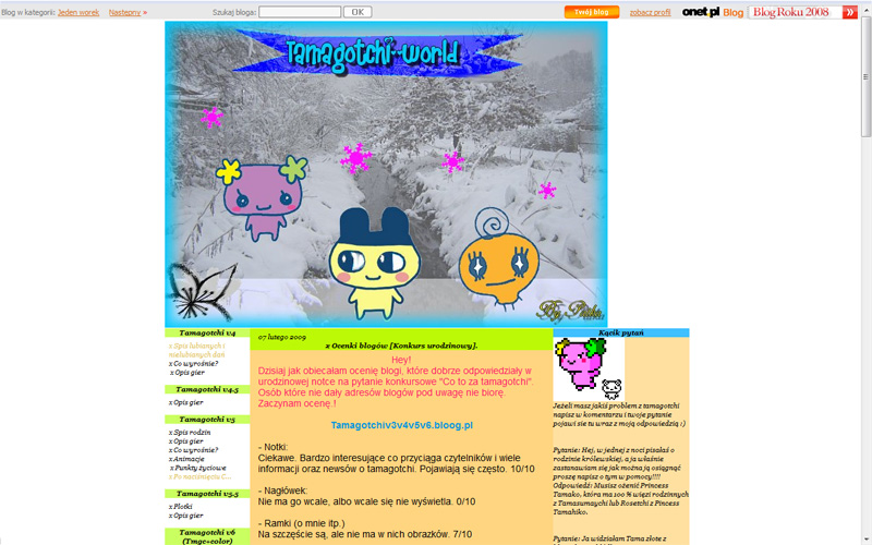 Dobry, regularnie aktualizowany blog. Dużo atrakcji dla czytelników - konkursów, obrazków, ale też sporo porad na temat Tamagotchi i newsów. Estetyczna grafika.