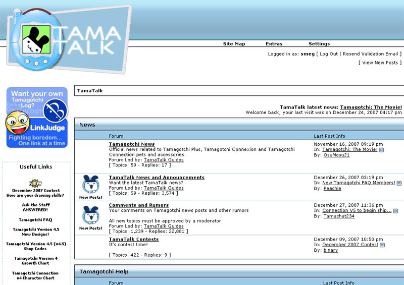Duże forum dotyczące Tamagotchi. Zawiera mnóstwo bardzo przydatnych materiałów, większość z informacji krążących po polskich tama-blogach skopiowana jest właśnie z tej strony. Żeby się zarejestrować, trzeba mieć więcej niż 13 lat, przeczytać regulamin i posiadać e-mail na zagranicznym serwerze, np. gmail.